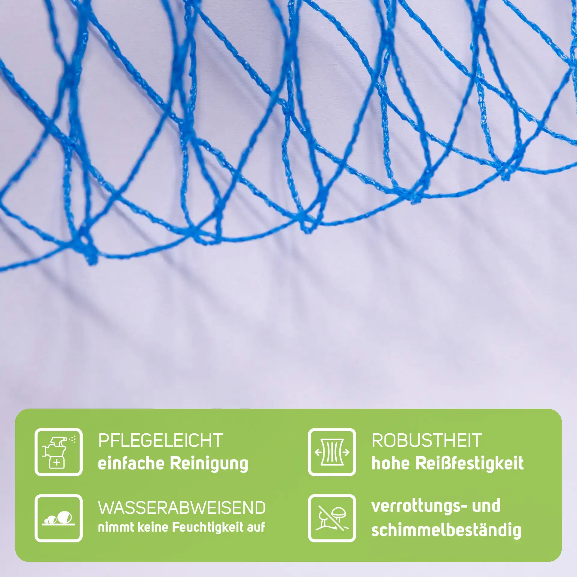 Die Blauen Netze haben den zusätzlichen Vorteil, dass die Netzfarbe für viele Vögel eine Warnfarbe ist und diese bereits dadurch abgeschreckt werden. Die grünen Vogelnetze sind dafür unauffälliger und passen sich besser in die Landschaft ein.