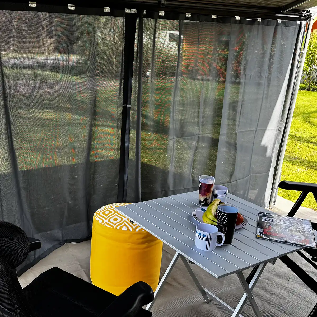 Damit kann der Vorhang an jeder Kederschiene mit einer Größe von 6 - 8 mm Öffnung montiert werden, egal ob an deinem Wohnmobil, Caravan, Wohnwagen, Reisemobil aber auch deinem Balkon oder Terrasse.