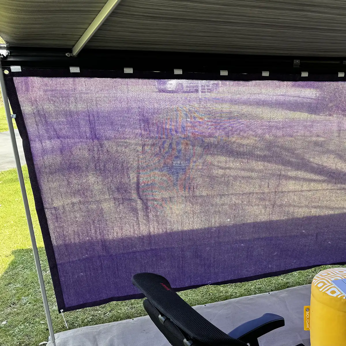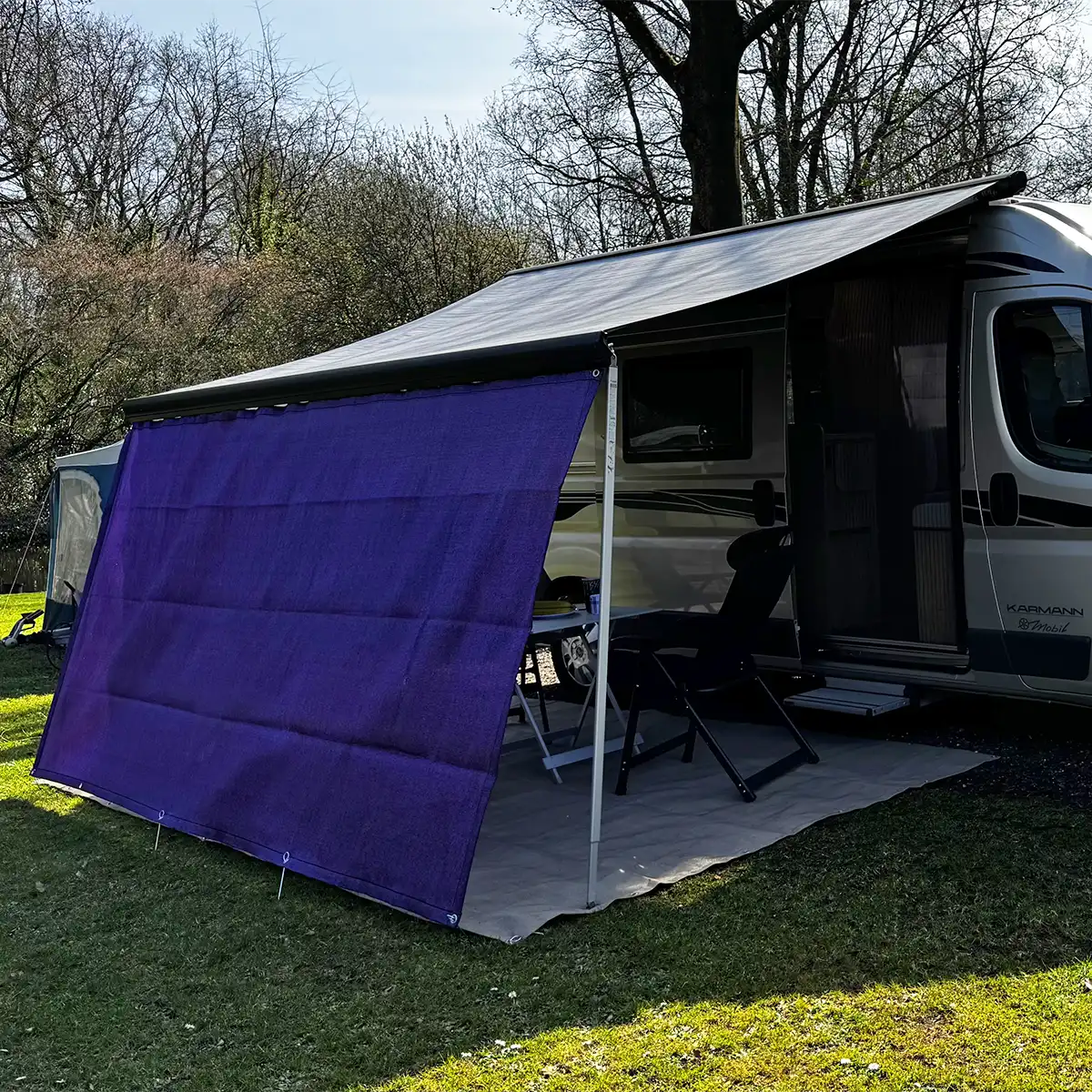 Das Material selbst ist UV-stabilisiert, sowie verrottungs-, schimmel- und wasserbeständig. Die einzigartig große Farbauswahl macht den Campingvorhang aus Netzmaterial zu einem beliebten Wind- und Sichtschutz.